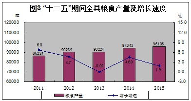 全年粮食产量达到96105.17吨,增长1.9%;蔬菜产量124712吨,增长8.4%;油料产量1986吨,下降34.2%;药材产量24464吨,增长9.0%。