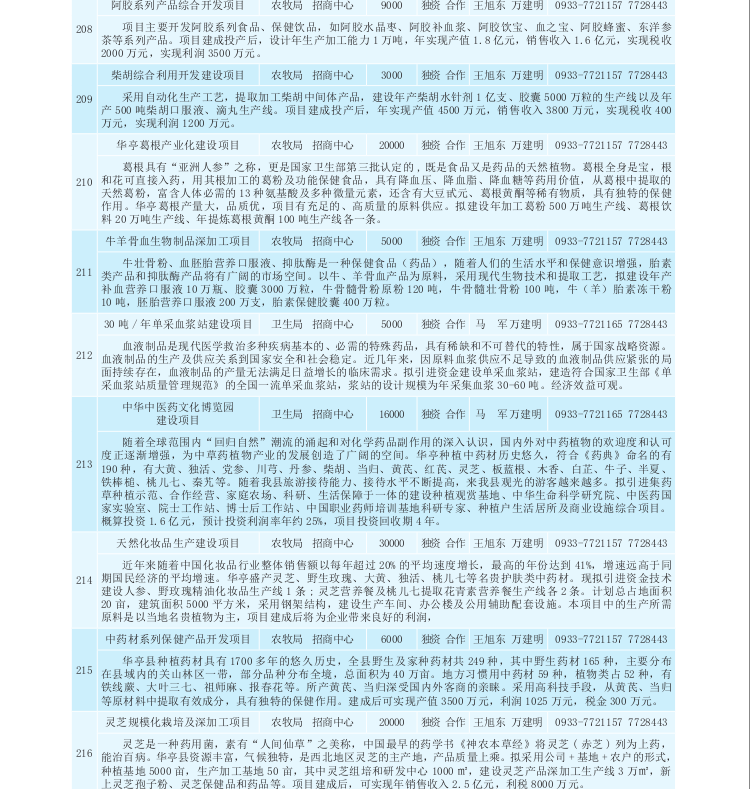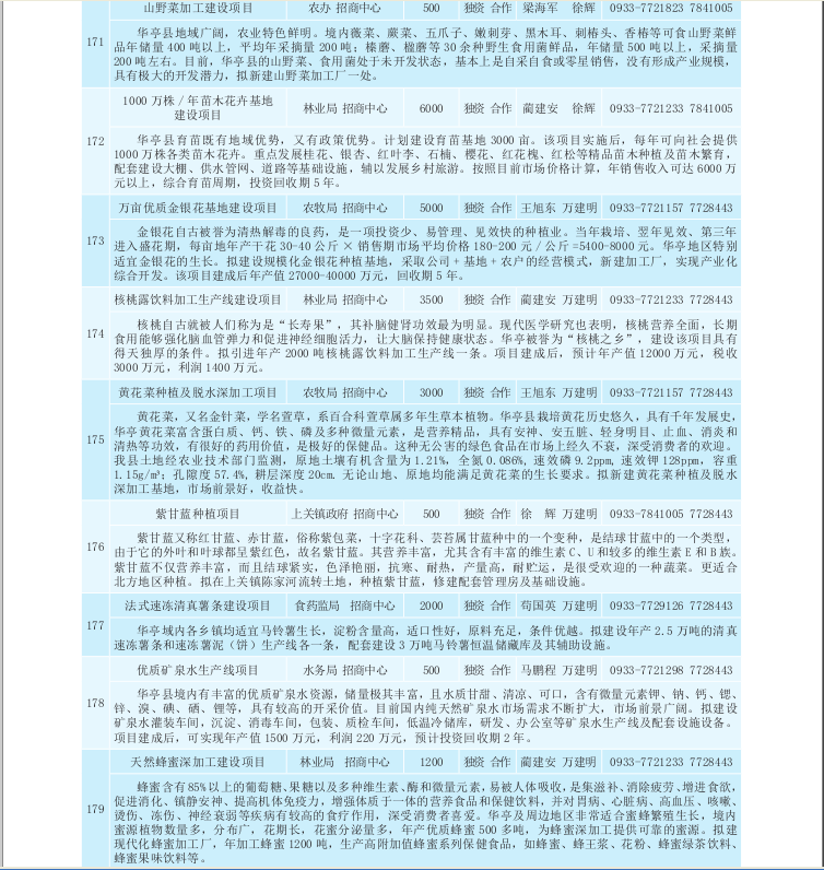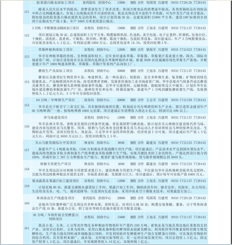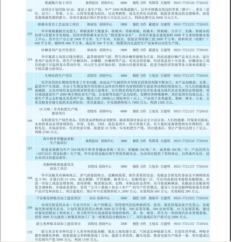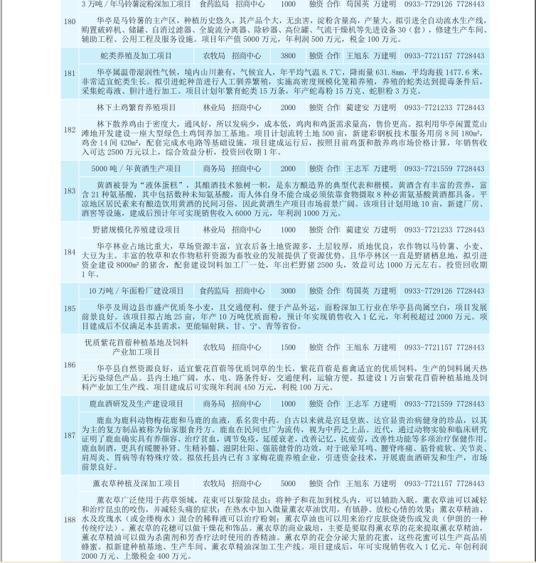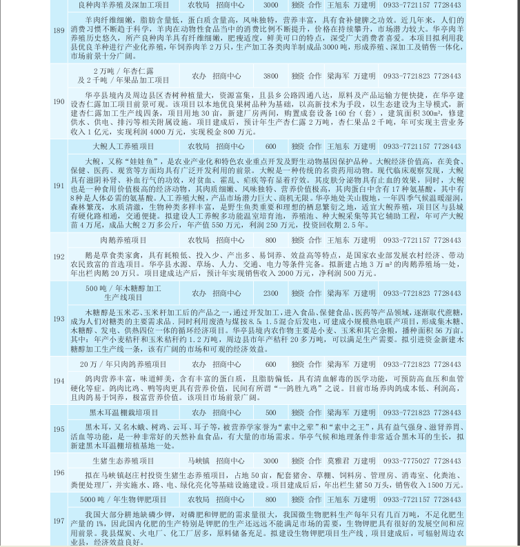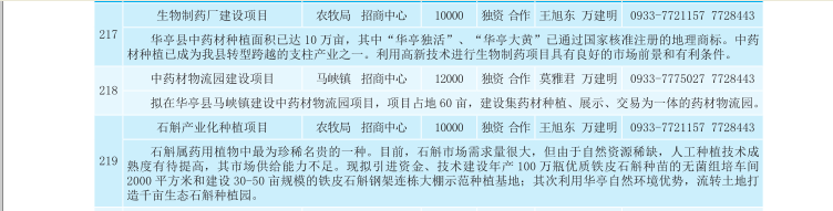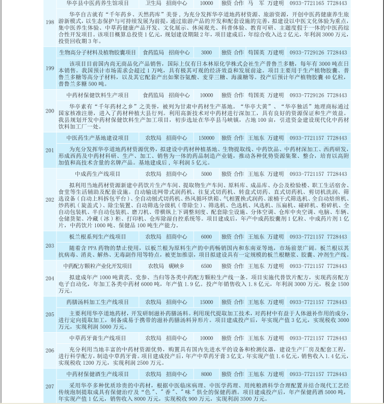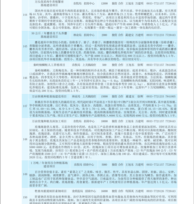 华亭县2017年招商引资项目库(农业产业化、生物医药类)