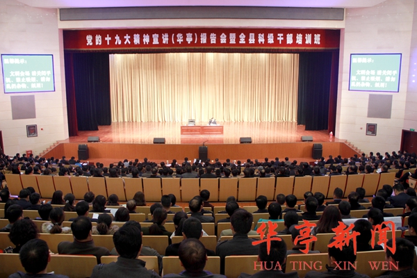 县上领导孟小金、闫学明、王宏林、冯天祥、穆冬梅、刘红莉、景晓东、黄瑞荣、李锋、赵启祥、申强、刘天义、吴宗威、刘小平、穆小菊、赵亮、石彦峰,各乡镇、县直各部门、省市驻华亭各单位全体科级干部,县委宣讲团成员,东华镇、东华街道办部分干部参加会议。